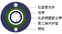 產品型號: GYXTW 中芯松套管光纖 纜芯填充油膏 軋紋鋼帶粘結PE護套 夾帶雙平行鋼絲PE護套